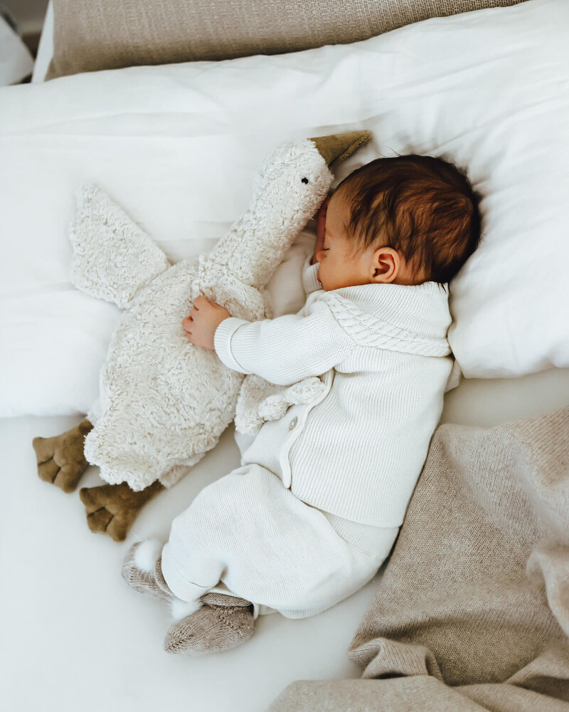Költöztessétek be ezt a kis fehér libát a gyerekszobátokba! Ez az organikus pamutból készült fehér liba nem csak egy remek ölelnivaló társ, de még egy meglepetést is rejt : belül a pocakjában egy kivehető pamut párna található, melyet bio szőlőmagokkal töltöttünk meg. Hűséges kis barátotok így lesz egy pillanat alatt bújós melegítő- vagy hűsítőpárna!