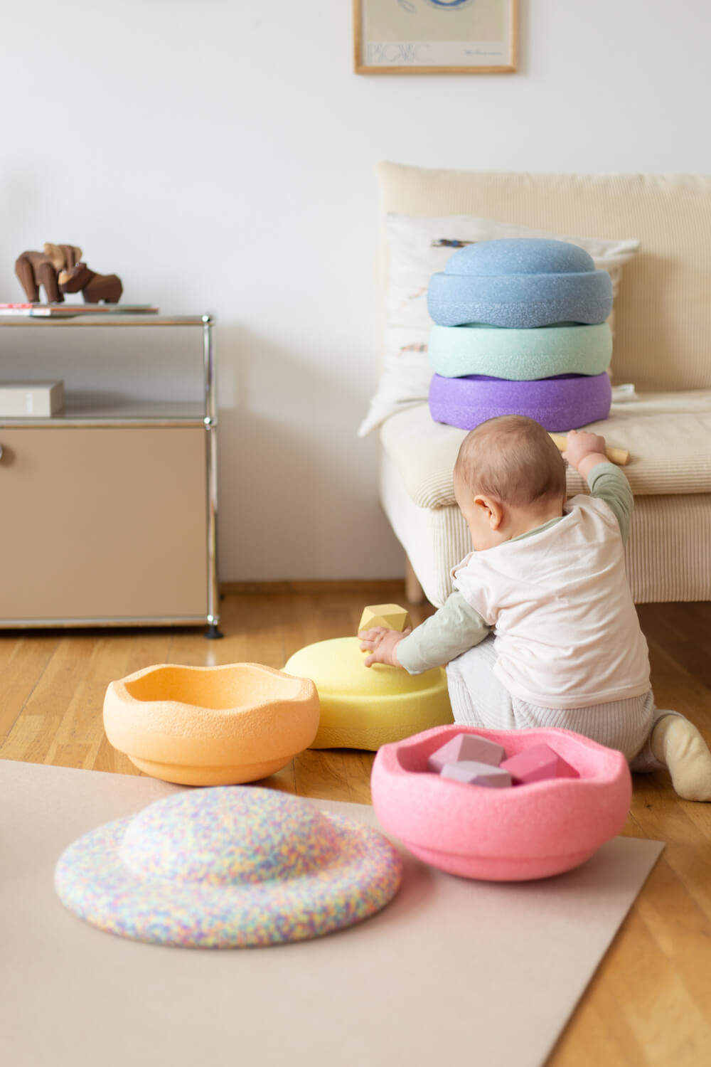 A hat pasztellszínű Stapelstein® Originalt remekül kiegészíti a Stapelstein® Board konfetti pasztell, amely különösen alkalmas egyensúlyi játékokhoz és egyensúlygyakorlatokhoz. Táncolj a pasztell szivárványon, és vigyél könnyedséget életetekbe.