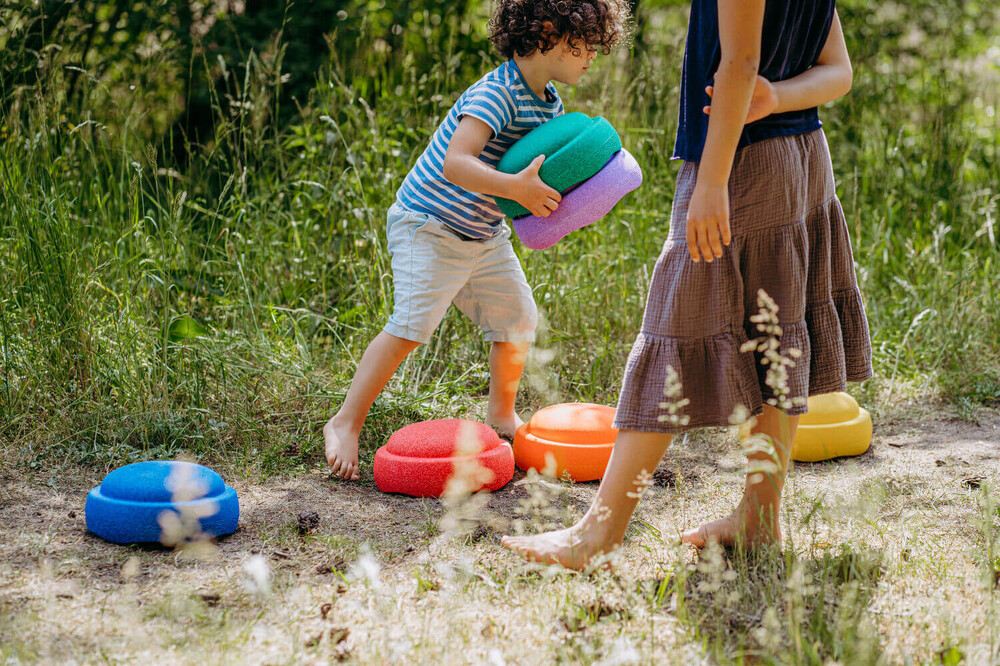 Ha a Stapelstein® termékeket egyensúlyi játékokhoz és pályákhoz szeretnétek használni, a legjobb, ha azt vízszintes és csúszásmentes felületen teszitek. Csak annyi Stapelstein® elemet rakjatok egymás tetejére, amennyivel még biztonságosnak érzed a játékot. Javasoljuk, hogy legfeljebb 3 lépőkövet rakj egymásra, ha szeretnél felmászni az így készített toronyra.