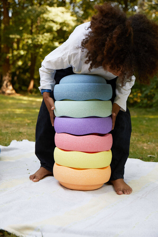 A Stapelstein® Original pasztell szivárvány szett minden helyiségben vonzza a tekintetet. Világos, élénk színeinek köszönhetően minden otthonba és gyerekszobába illeszkedik. A pasztell színű Stapelstein® Original elemek minden más Original és Board elemmel kombinálhatók. Különösen az Original klasszikus szivárvány szettel kombinálva nagyszerű kombinációk születhetnek, amik mozgásra és építős játékra hívnak.