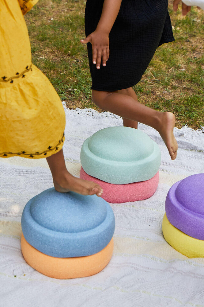 Ha a Stapelstein® termékeket egyensúlyi játékokhoz és pályákhoz szeretnétek használni, a legjobb, ha azt vízszintes és csúszásmentes felületen teszitek. Csak annyi Stapelstein® elemet rakjatok egymás tetejére, amennyivel még biztonságosnak érzed a játékot. Javasoljuk, hogy legfeljebb 3 lépőkövet rakj egymásra, ha szeretnél felmászni az így készített toronyra.