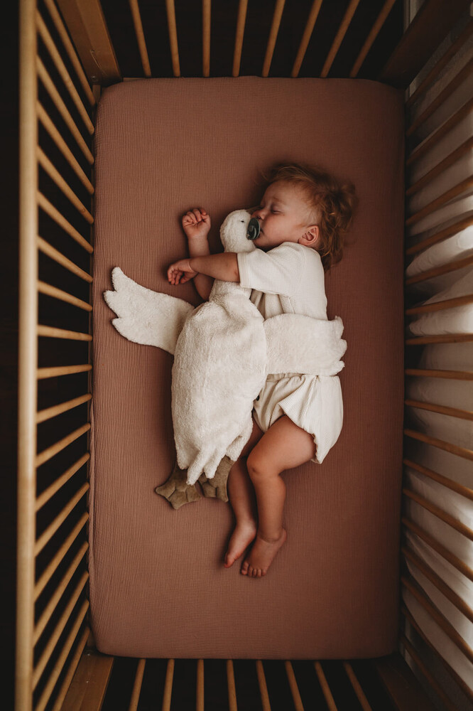 Költöztessétek be ezt a nagy fehér libát a gyerekszobátokba! Ez az organikus pamutból készült fehér liba nem csak egy remek ölelnivaló társ, de még egy meglepetést is rejt : belül a pocakjában egy kivehető pamut párna található, melyet bio tönkölypelyvával töltöttünk meg. Hűséges kis barátotok így lesz egy pillanat alatt bújós melegítőpárna!